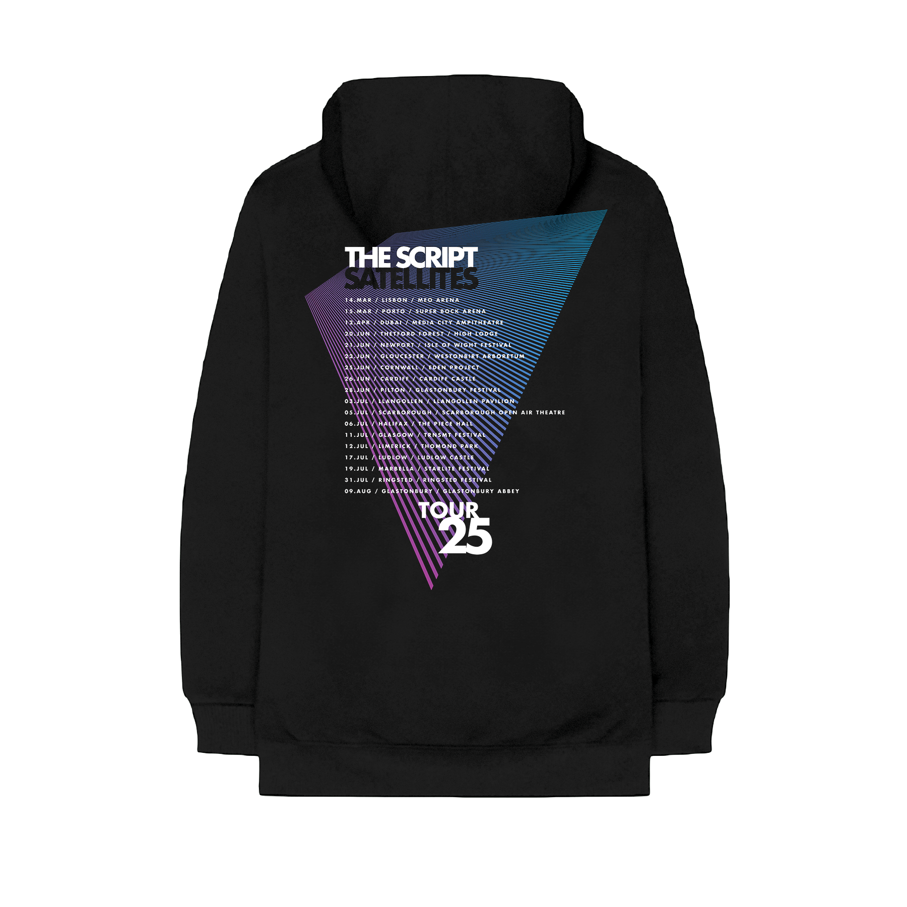 Official dateback hoodie from The Script Satellites 2025 tour range.